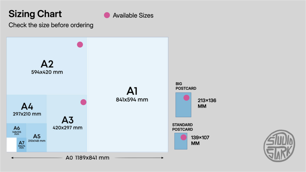 You can choose from the options of sizes available. The frame is not included, the print will be done on a 200 or above GSM premium paper.